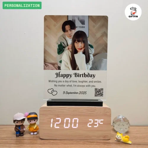 นาฬิกาไม้ LED 15x7x4.5 cm (แบบที่ 7) แนวตั้ง 1 รูป | สกรีนรูปภาพ+ข้อความ | ของขวัญวันเกิดแฟน | GiftFin